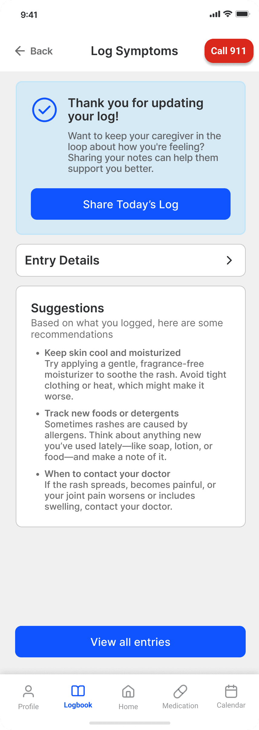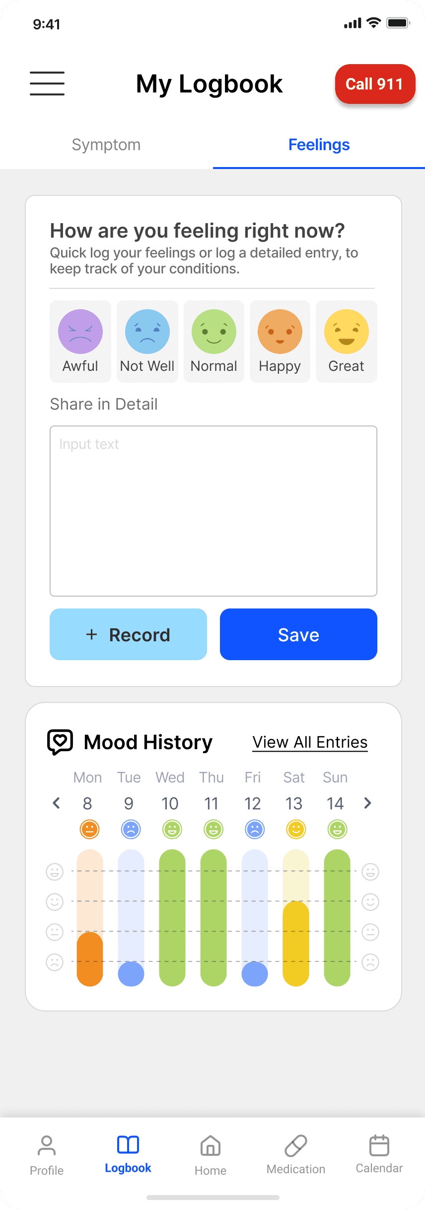 Demo video on how users can log symptoms and feelings