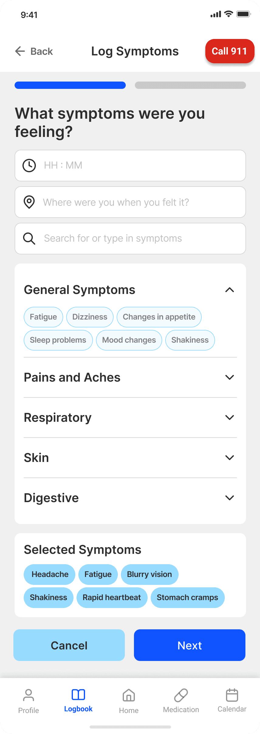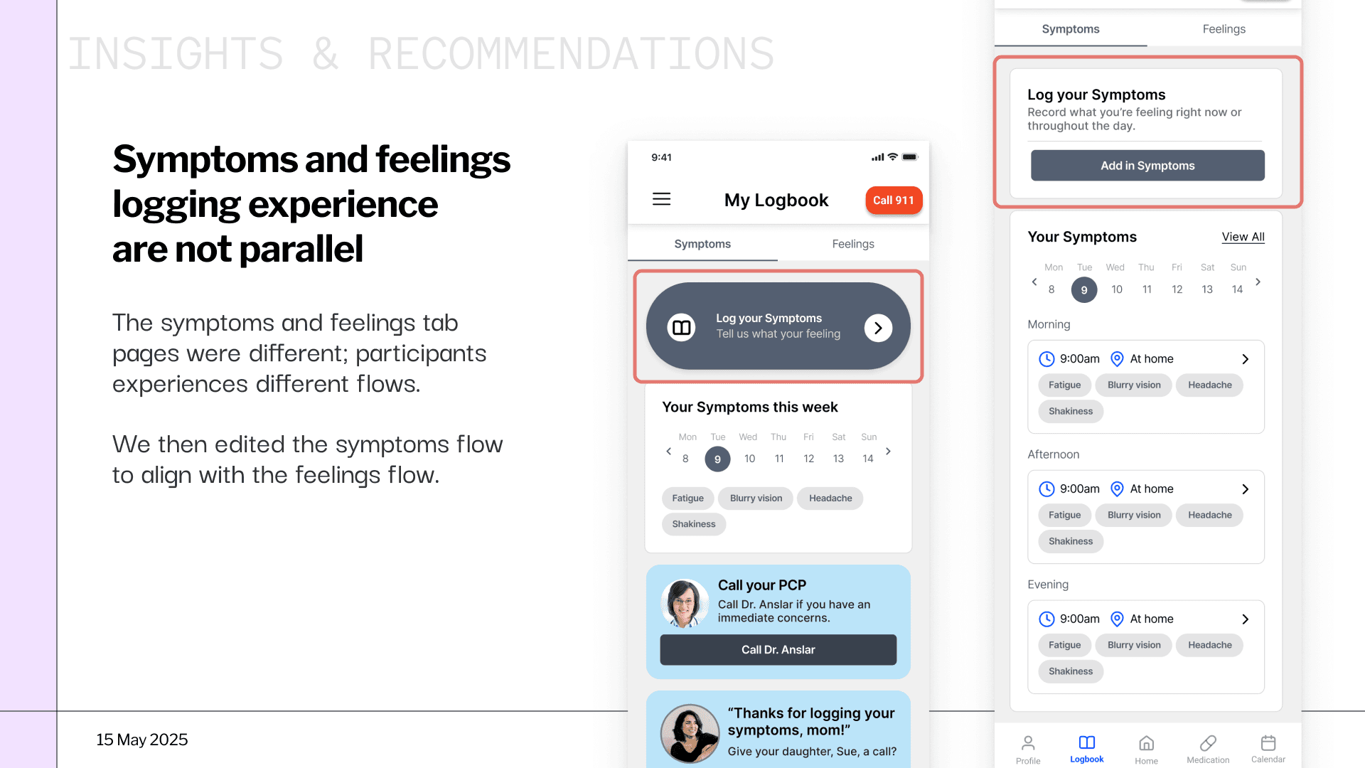 🌟 My focus: symptoms logging flow and prototyping functionality.