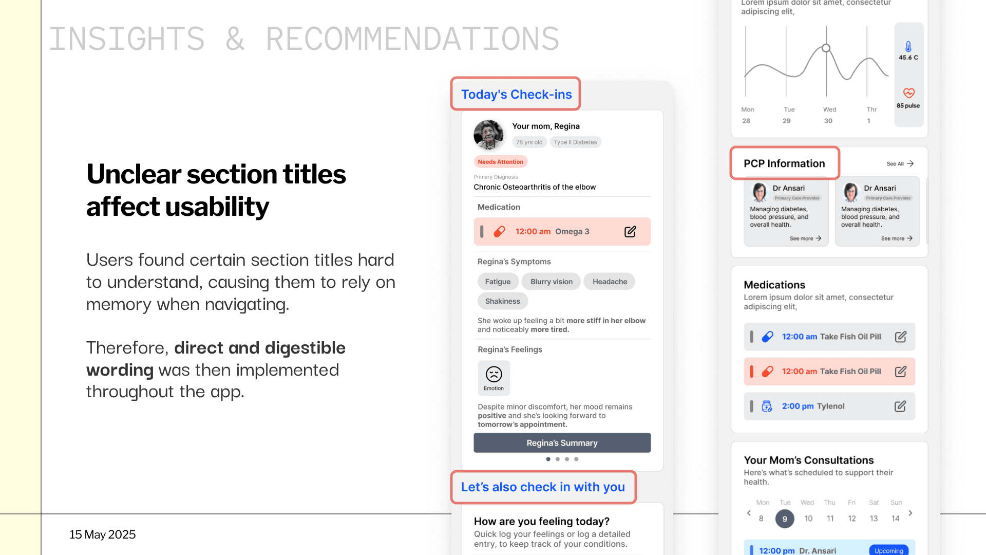 ✅ Our approach: Through stakeholder discussions and advisor guidance, we scoped to patient-caregiver communication as our core focus, ensuring we could deliver a high-quality MVP rather than surface-level updates across the entire platform.