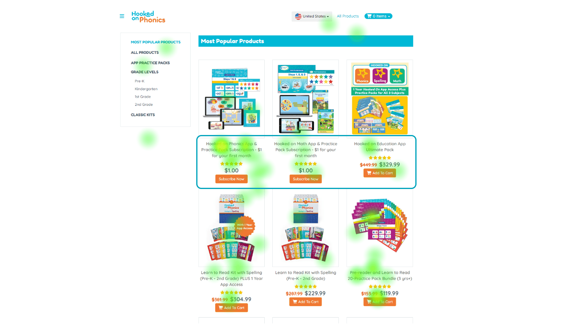 Products page heat map