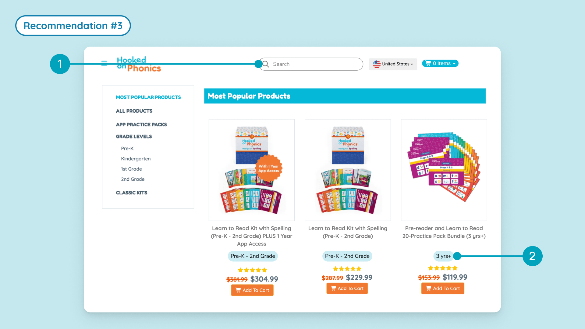To reduce browsing friction and help users more easily locate products, we also proposed improvements to the site’s navigation: