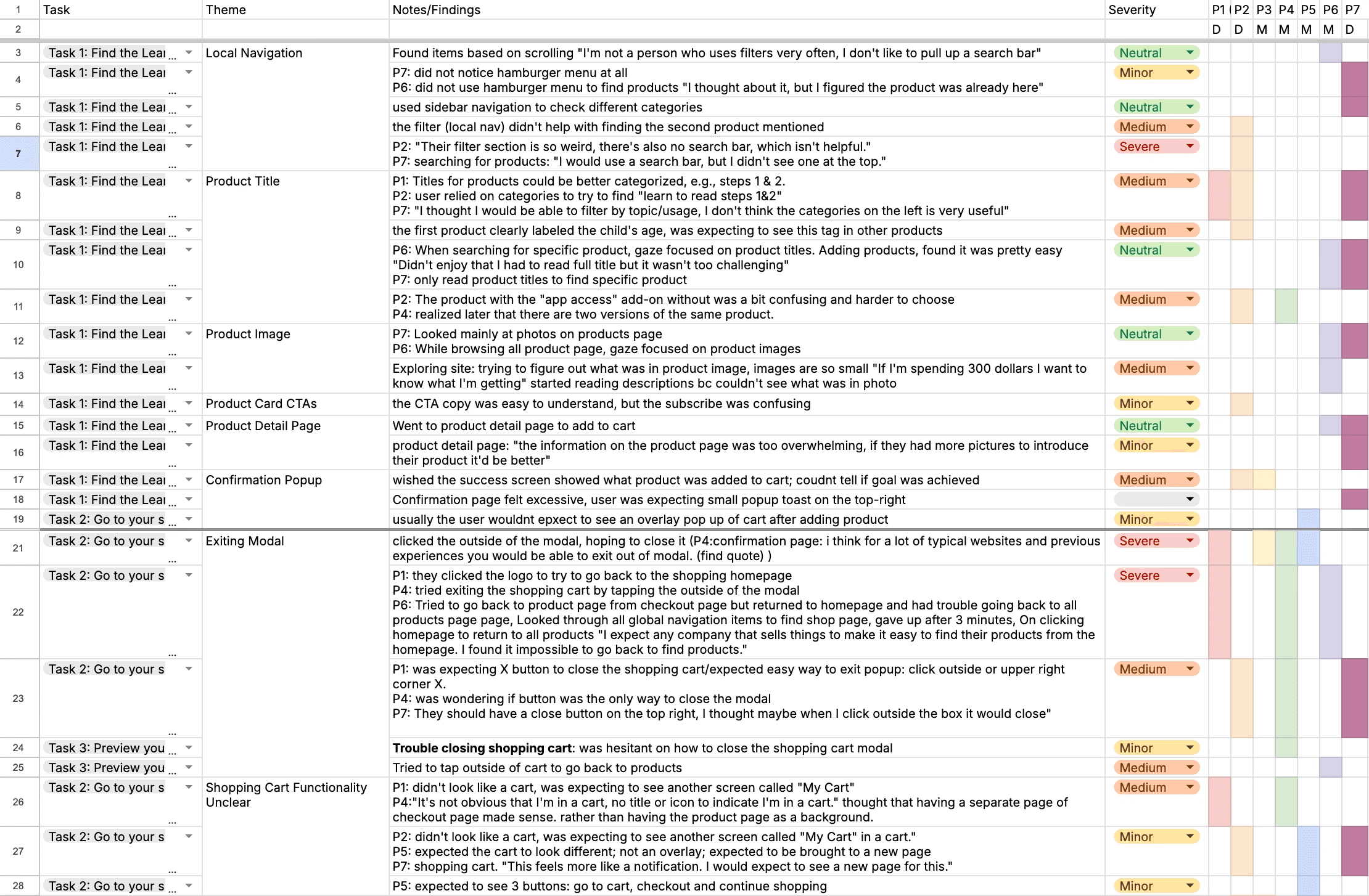 In addition to evaluating the checkout experience, we also examined the “All Products” page to understand how users browsed and located items.